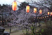 大町市恒例の「おおまち桜まつり」(実行委員会主催)が10日、桜の名所・大町公園で始まった。見頃に合わせて公園内を173張の提ちょうちん灯で飾り、来場者の目を楽しませている。 |
