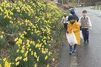 里山に春「水仙街道」見頃 小谷村土谷 住民ごみ拾い清掃